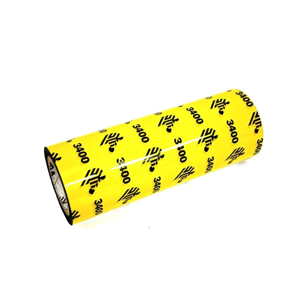-Amostra de fita de transferência térmica Zebra, cor preta em cera-resina qualidade 3400, formato 110mm x 50m em mandril de 25,4mm.