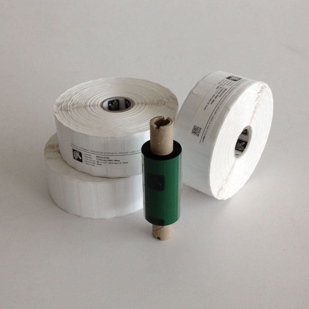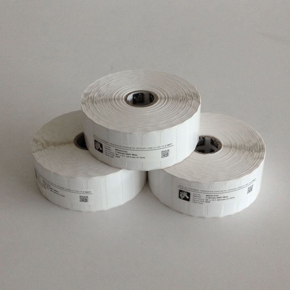 -Caixa de 6 rolos de etiquetas destrutíveis em polietileno Z-Destruct PE 8100T formato 63.5mm x 19.05mm em mandril de 25mm. Rolo de 3652 etiquetas, ou 21912 etiquetas por caixa. (fita não incluída).