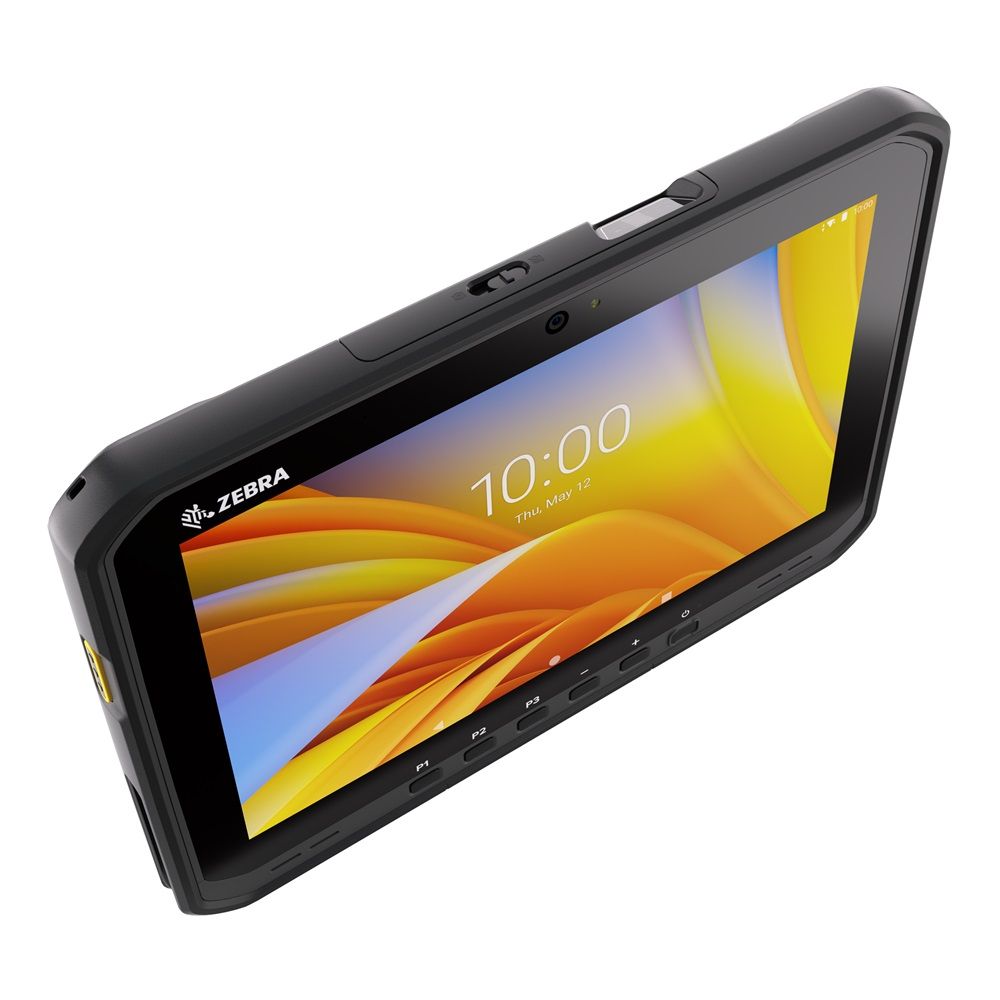 Tablet portátil ZEBRA ET60 Android 16 com tela sensível ao toque de 10,1". Conectividade Bluetooth e Wi-Fi. Processador de 2,7 GHz, memória RAM de 8 GB e memória flash de 128 GB. Bateria de 8920 mAh com câmera frontal e traseira. Certificado IP66.