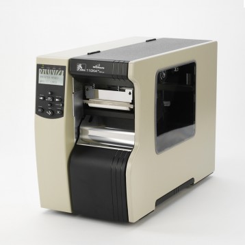 -Impressora de etiqueta industrial Zebra 110Xi4, transferência térmica em 203 dpi e 102mm de largura de impressão com porta serial, paralela, USB e rede Zebranet interno, com sistema de corte, 8Mo de Memória Flash, com o eixo do mandril fixo.