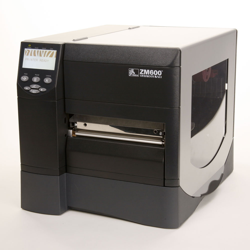 -Impressora de etiqueta semi-industrial Zebra ZM600, transferência térmica em 203 dpi e 168mm de largura de impressão, linguagem de programação ZPL, 8Mo de Memória Flash e dispensador da etiqueta de modo passivo, com rede Zebranet interno 10/100, Zebranet b/g rádio (não incluído).